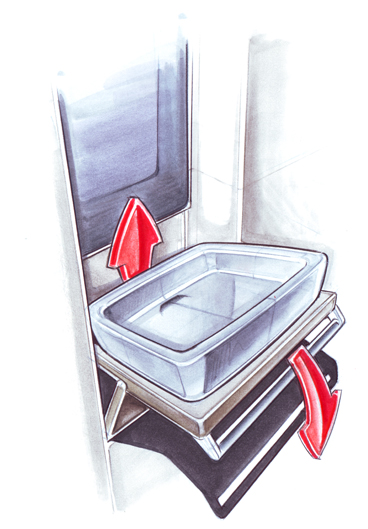 Kompakt-Bad für ReisemobileHerausschwenkbaresWaschbecken ausGlaskeramik- 2D Entwurf- Kinematikkonzepte
